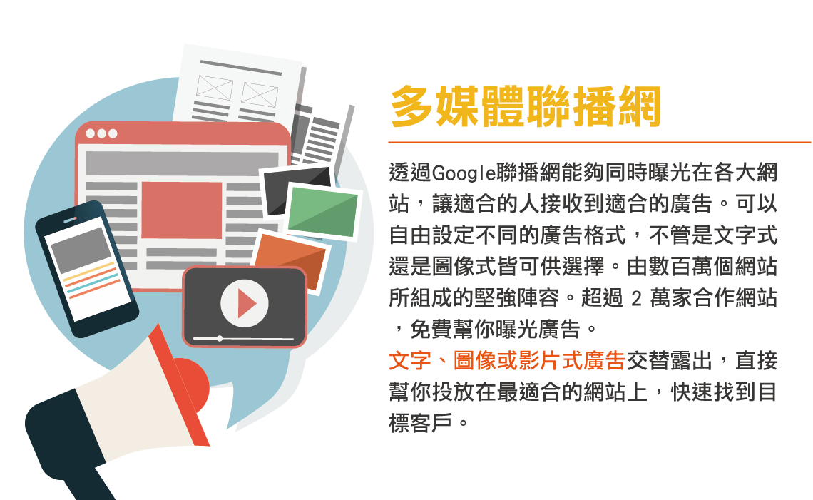 針對服務產品相關的網站,進行分類投遞,讓服務資訊與聯播網息息相關。