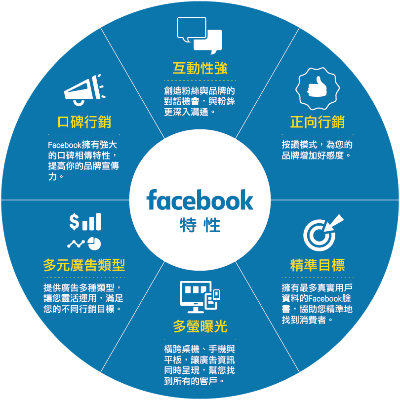 協助你在 Facebook 上觸及到特定的目標族群 取代以往 eDM 、簡訊發送等行銷方式,結合最多人使用的社群媒體,在 Facebook 上鎖定這批消費過的客戶,投遞他們喜愛的廣告促銷資訊。